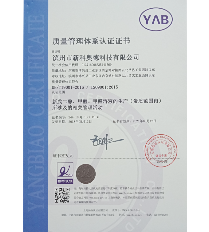 濱州市新科奧德科技有限公司成立于2007年,幾年來(lái)企業(yè)規(guī)模不斷擴(kuò)大,經(jīng)濟(jì)效益與社會(huì)效益不斷提高,實(shí)現(xiàn)利稅連年遞增,生產(chǎn)經(jīng)營(yíng)由過(guò)去單一產(chǎn)品的開(kāi)發(fā)模式向多元化模式發(fā)展,公司坐落于黃河三角洲美麗的董永故里,呂劇起源地——山東博興,是新戊二醇、甲酸...